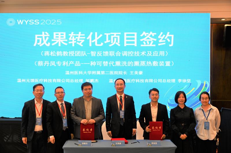 我院两项成果转化项目成功签约。蒋松鹤教授团队的《智反馈联合调控技术及应用》以100万元转让给温州元馈医疗科技有限公司,蔡丹凤发明的“一种可替代熏洗的熏蒸热敷装置”以50万元转让给温州奥通医疗科技有限公司。王美豪院长和邹鹏杰总经理、李徐坚总经理代表签约。