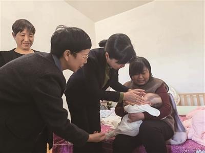 陈尚勤、谢微微入户检查早产儿康复情况。