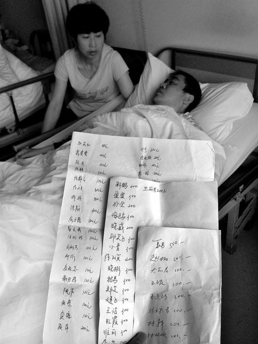“本来身体好好的,突然得了这种病,一辈子得看病吃药,心里肯定接受不了。”老郑说,医院领导和同事都过来看望他,叫他安心养病,给了他很大信心,现在心态比刚开始要好很多。说着,老郑从口袋里掏出了三张写有该院医生和护士名字的捐款纸条。记者看到,纸条上写着有的人捐100元、有的人捐500元……50多名医护人员共捐了12000元(如图)。“我都不知道该怎么谢谢他们。”老郑说,希望通过媒体向所有关心他的人说声谢谢,同时他会更加坚强地生活。
