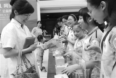 启动仪式后,志愿者队伍分头以不同的形式为“水晶宝宝”奉献自己的力量。当天恰逢“六一”儿童节,在这个孩子的节日里,不同年龄段孩子们的积极参与更是给这个公益活动增添色彩。