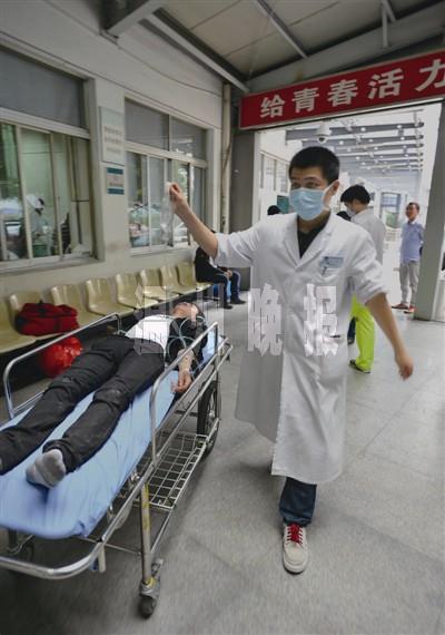25岁的叶挺在急诊科已工作近两年,他的工作较女护士多出了一些体力活,比如抬担架,运送病人等。而下午,将一位下肢静脉血栓的女患者转送住院区的任务就交到了他身上。