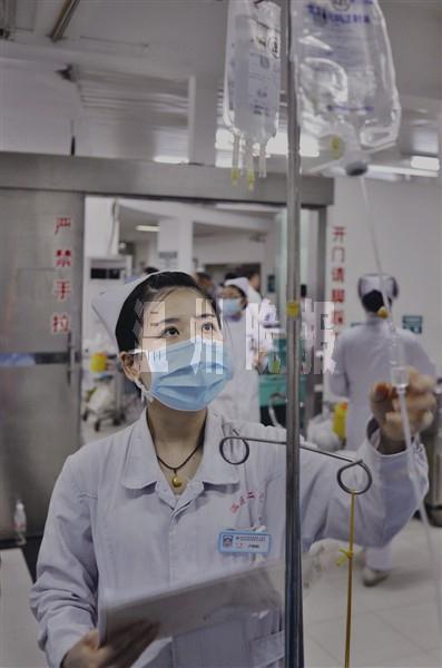 站在病区,不断有护士在我旁边迅速走过,耳边除了“BBBB……”的仪器声,就是护士们急促的对话:“6号床马上导尿”,“注意3号床的病情”“现在有没有病人可以往住院部转移?”……作为医院的第一个“分流站”,收治和分流病人的工作也是比较繁重。