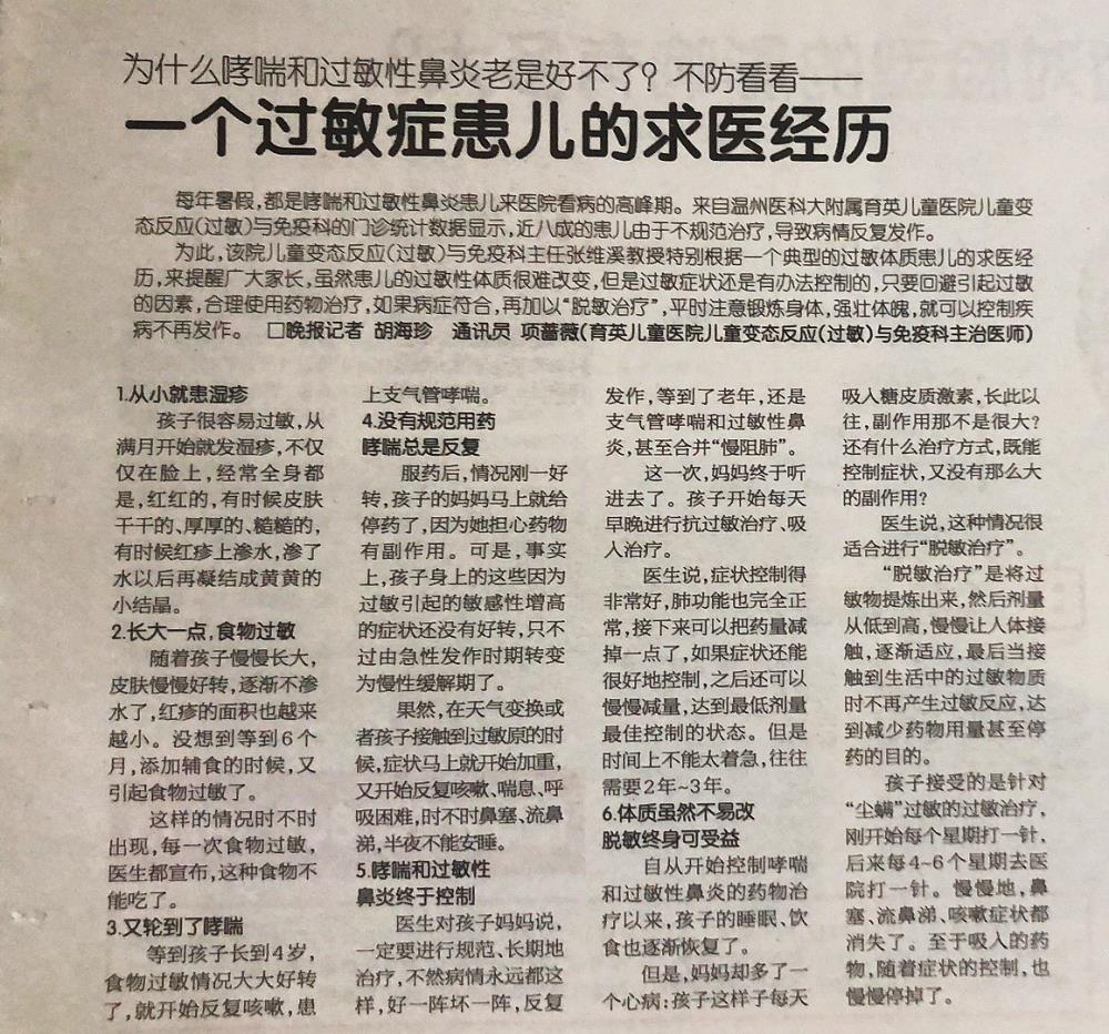 【温州晚报】一个过敏症患儿的求医经历