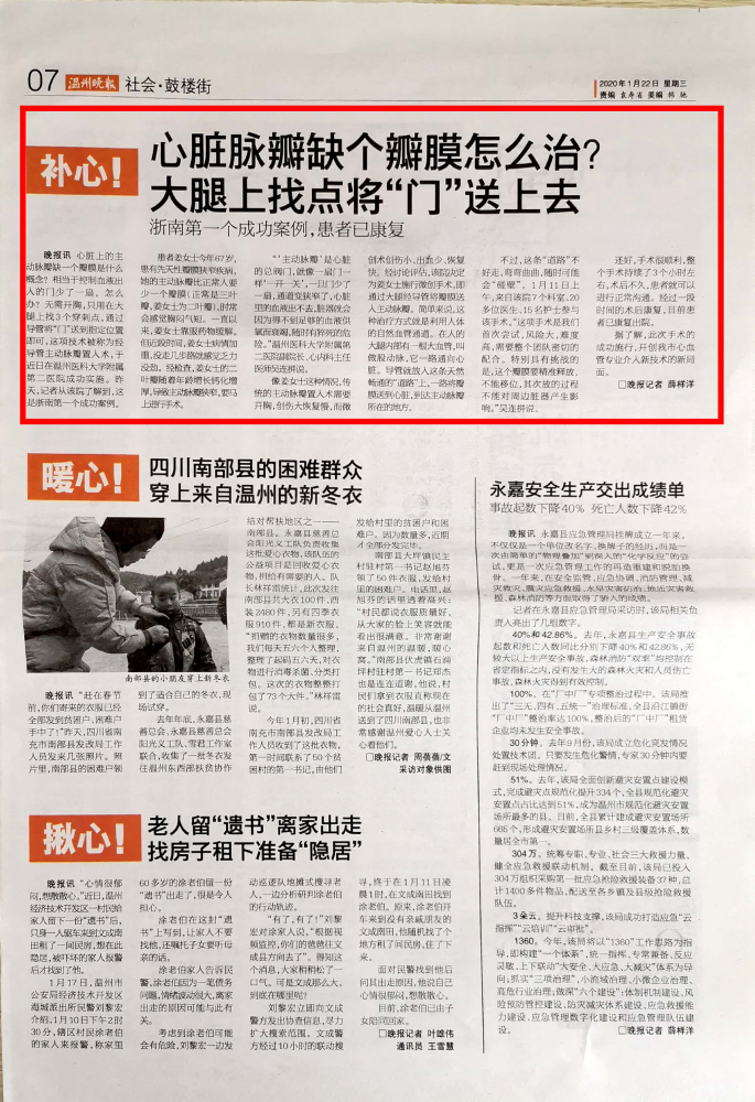 昨天,记者从附二医了解到,这是浙南第一个成功案例。