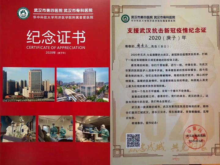 与此同时,医疗队成员也收到了礼物,一份纪念证书。郑秀云说,这几天,陆续还有市民前来和医护人员们道别,有人送来了成箱周黑鸭、热干面等伴手礼,医护人员的行李被这些“温情”装满。