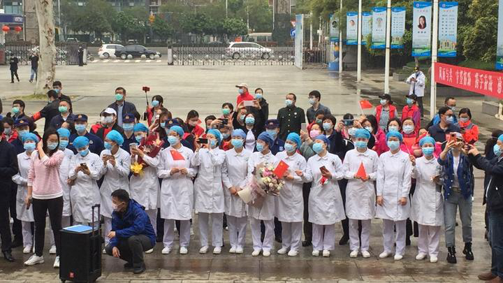 欢送仪式这天,不少患者和市民还自发过来给温州医疗队送行,他们纷纷表达了不舍,对曾经救治过他们的医生表示了深深的感谢。一路上,武汉市民纷纷高喊“一路顺风”。
