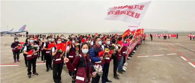 3月22日下午,顺利完成救治任务的温州首批驰援武汉的医疗队的20名医护人员和我市第二批援鄂唯一留守的医护人员易同燕,搭乘浙江长龙航空诗画浙江号GJ6003和GJ6002两架包机抵达杭州。