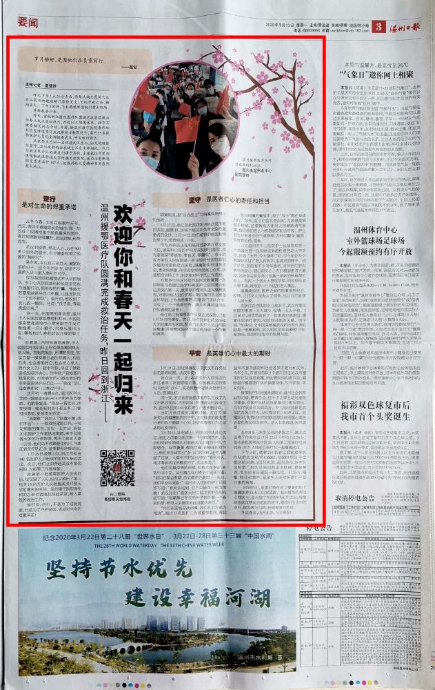 温州援鄂医疗队圆满完成救治任务,昨日回到浙江——