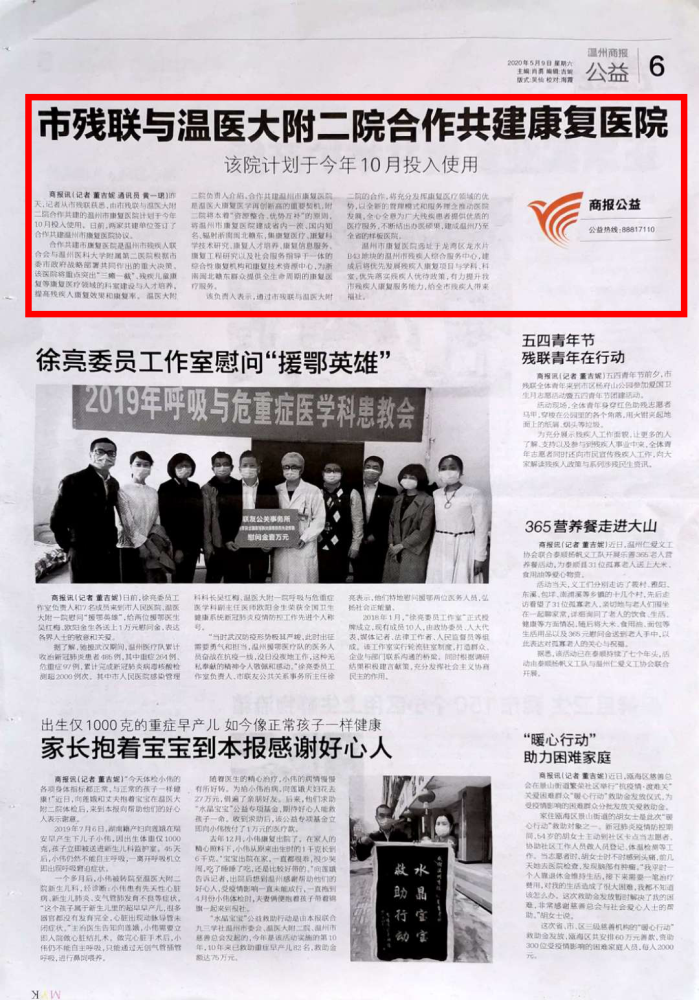 该负责人表示,通过市残联与温医大附二院的合作,将充分发挥康复医疗领域的优势,以全新的管理模式和服务理念推动医院发展,全心全意为广大残疾患者提供优质的医疗服务,不断结出办医硕果,建成温州乃至全省的样板医院。