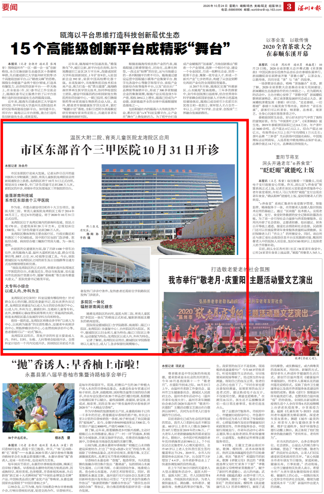 随着龙湾院区的启用,温医大附二院、育英儿童医院“多院区一体化”的格局正式形成,辐射浙南闽北赣东的格局显现。