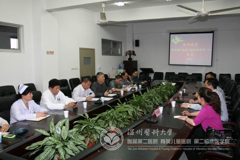 2013年4月15日,贵州省织金县人民医院姚彬院长一行4人来访我院,院长谷定英、副院长唐疾飞以及相关科室负责人热情接待远道而来的客人。