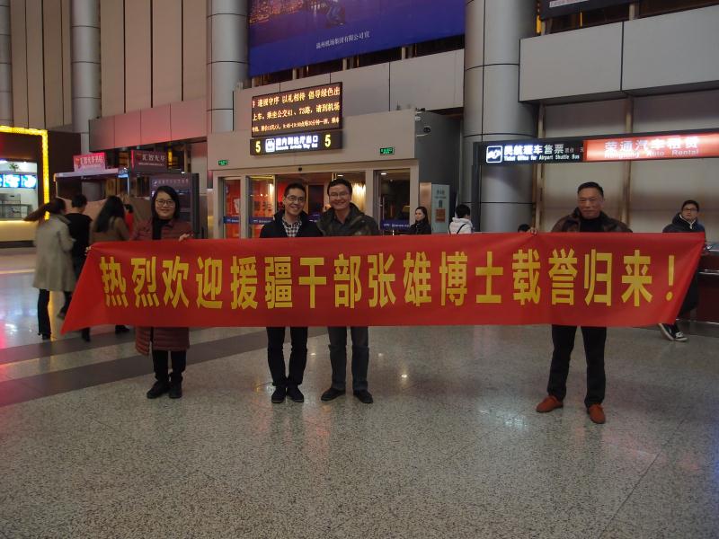 昨夜,中组部、团中央选派援疆博士服务团成员、我院神经内科张雄同志圆满完成为期一年的援疆工作任务后载誉归来。我院林坚副院长一行专程前往温州机场迎接。