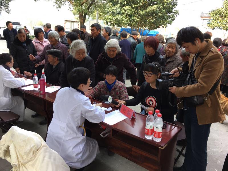 这天的白泉村社区卫生服务中心变成了临时的义诊服务基地。活动现场熙熙攘攘,村民们正在排队就诊。我院内科、眼科、骨伤科及护理等多个科室的专家和医护人员为150余名白泉村及周边村民提供了健康体检、疾病初步诊疗、健康教育及咨询等免费医疗服务,并向病人赠送了相关药品。