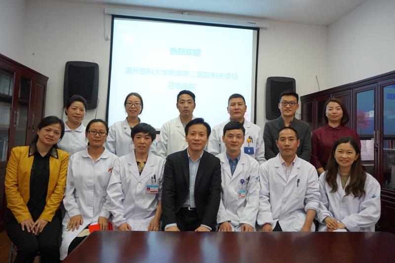 天台县中医院党总支副书记周爱明代表医院向我院慰问团队的到来表示热烈的欢迎,并简单介绍了中医院的基本情况和专家团队的帮扶情况。感谢专家团队把温医大二院的先进管理理念、经验,精湛的医术、高尚的医德医风等都带到了医院,特别是在技能培训、专科建设、人才培训、学科建设等工作都做出了积极的贡献。