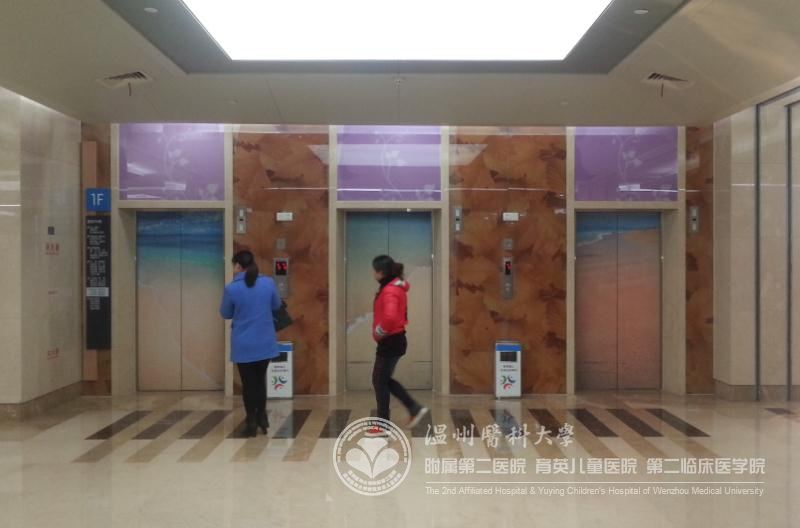 图6、东阳市人民医院贴了彩色喷绘的电梯