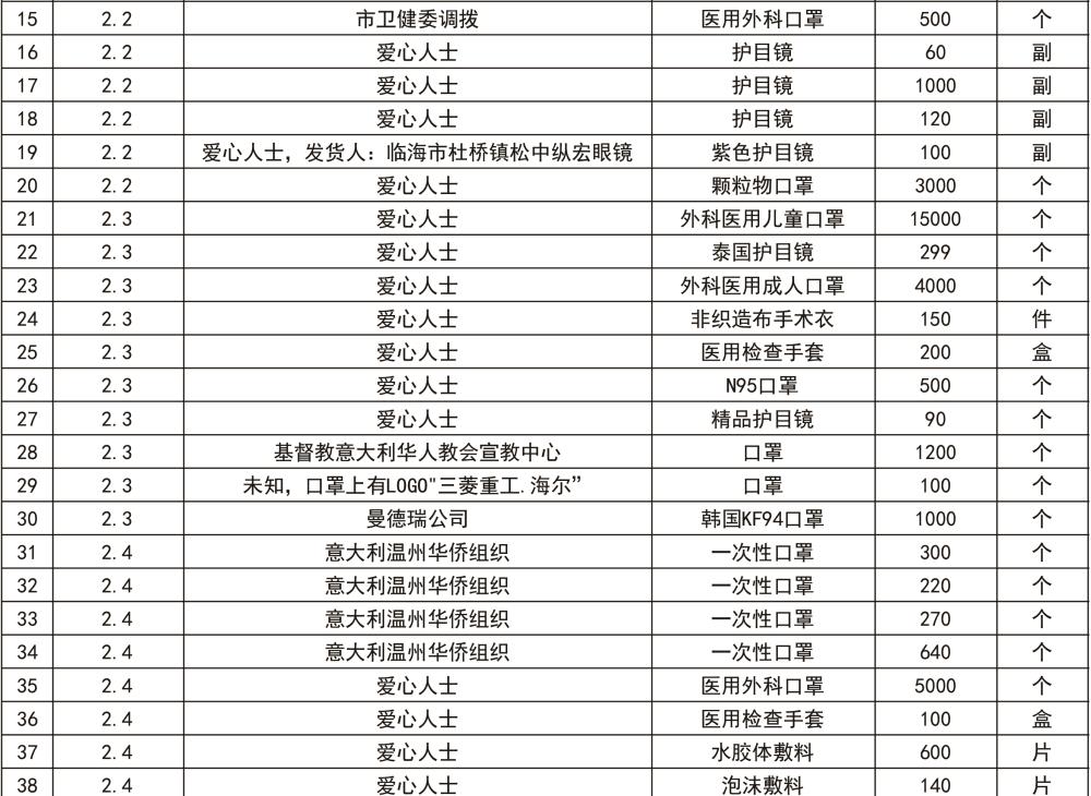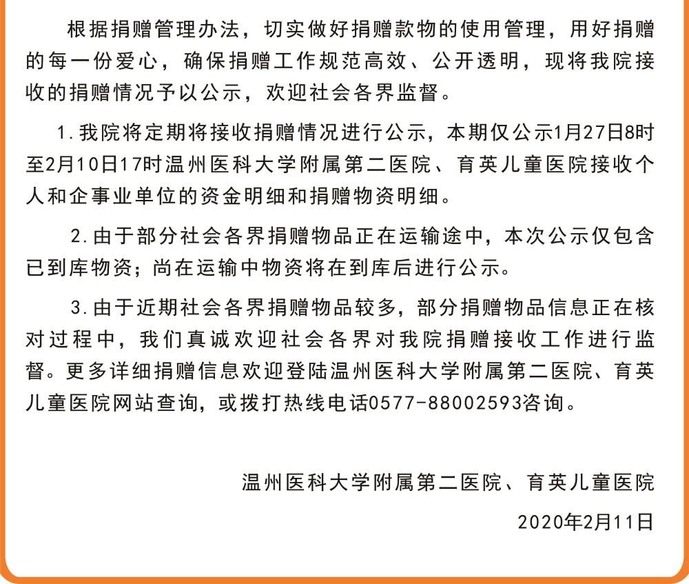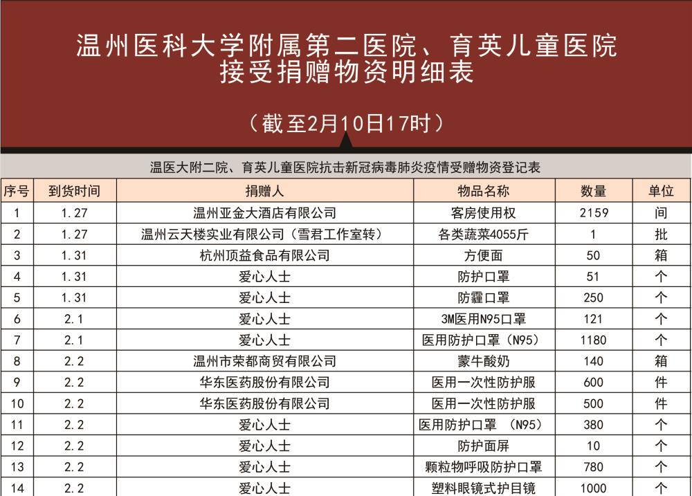 我院新冠病毒肺炎疫情接收捐赠情况公示(第一期))