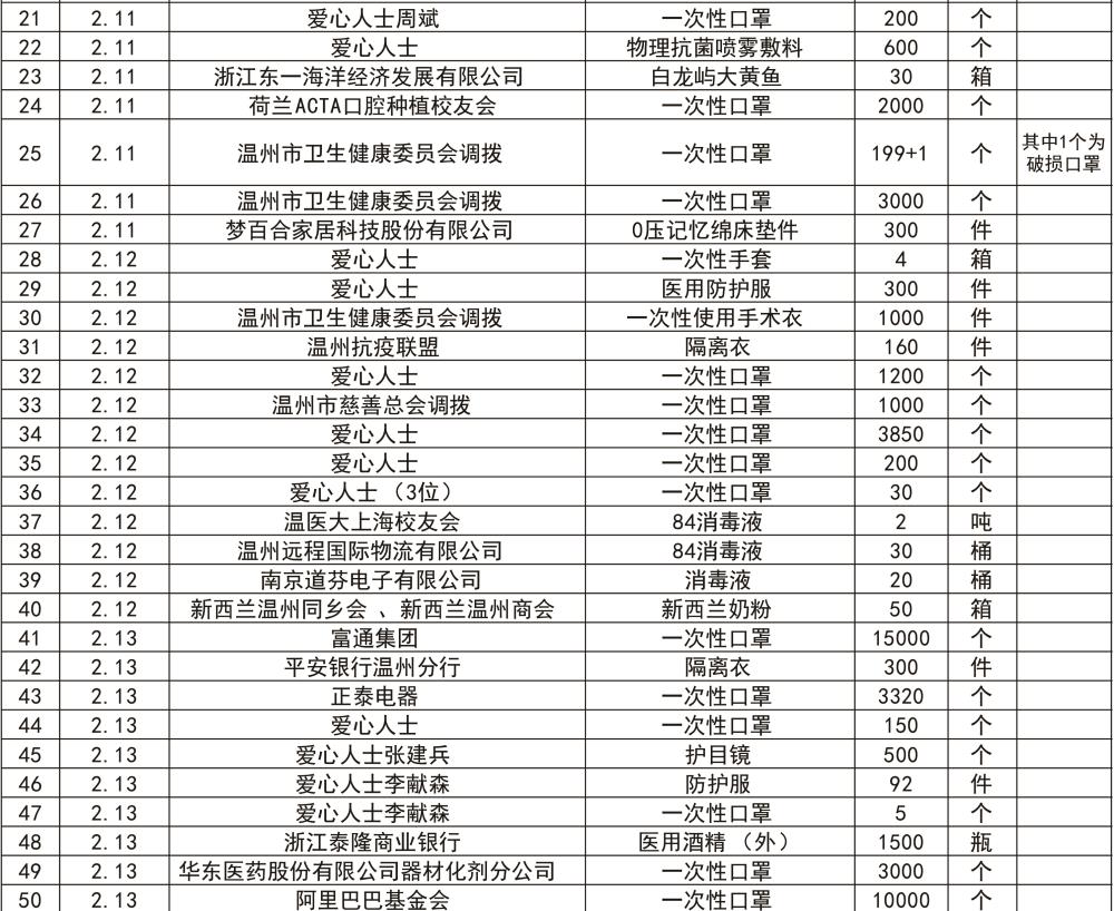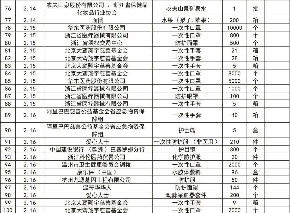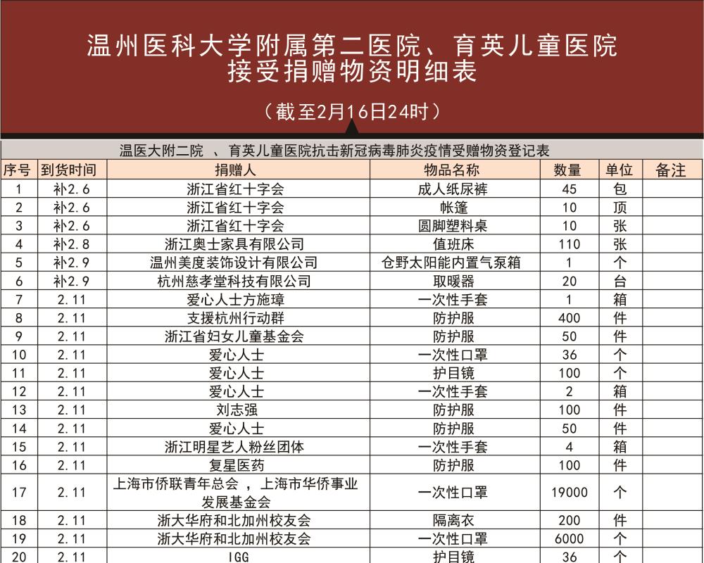 我院新冠病毒肺炎疫情接收捐赠情况公示(第二期)