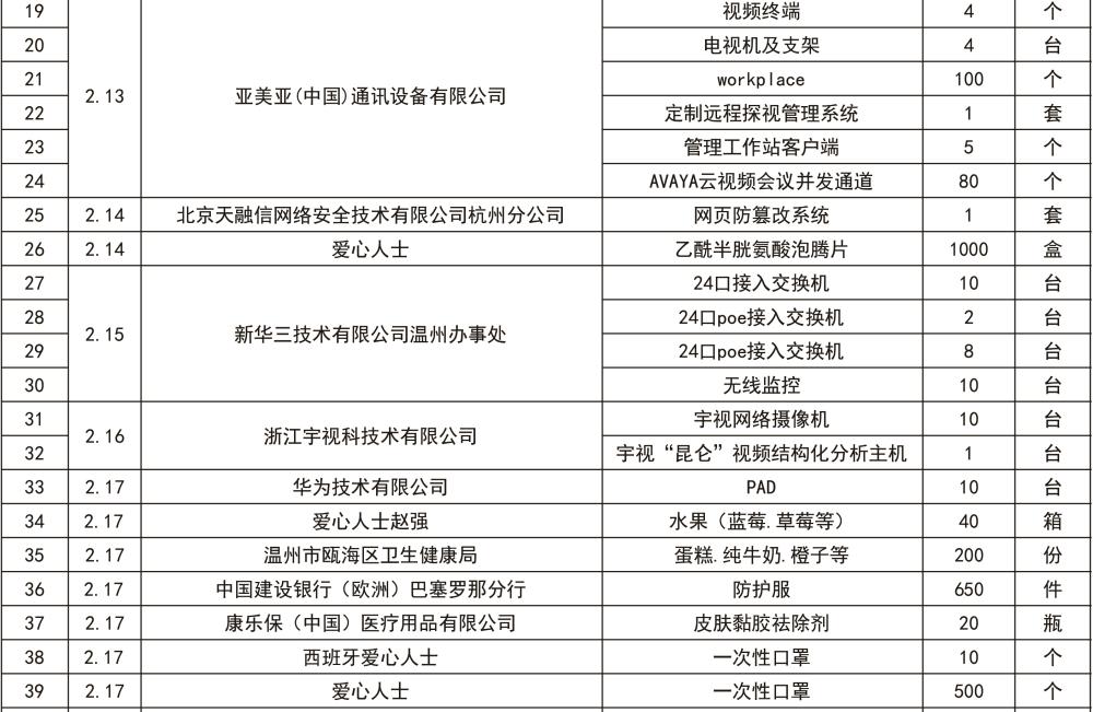 我院新冠病毒肺炎疫情接收捐赠情况公示(第三期)