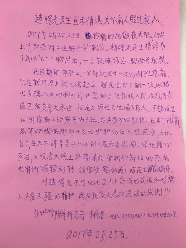 感谢H08赵曙光医师