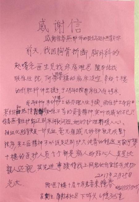感谢H13张帆护士