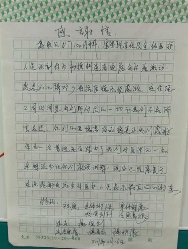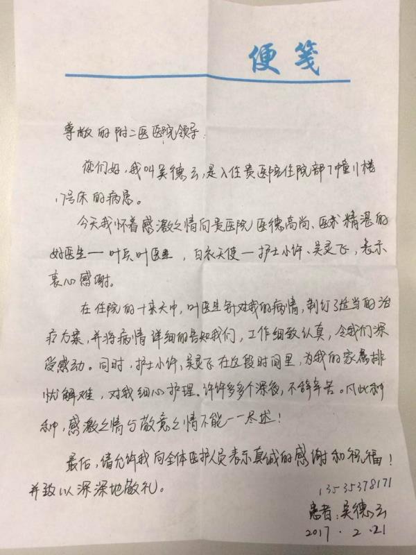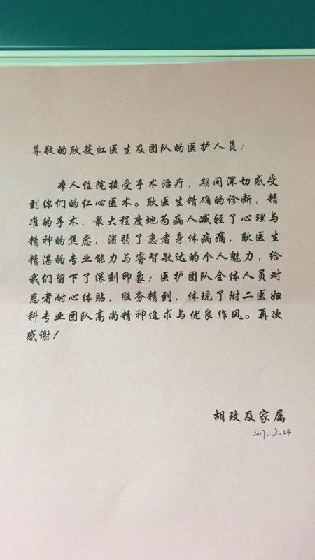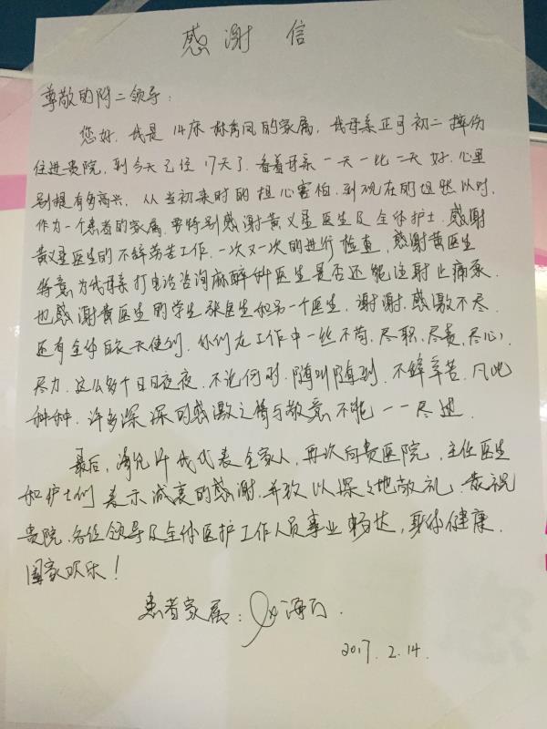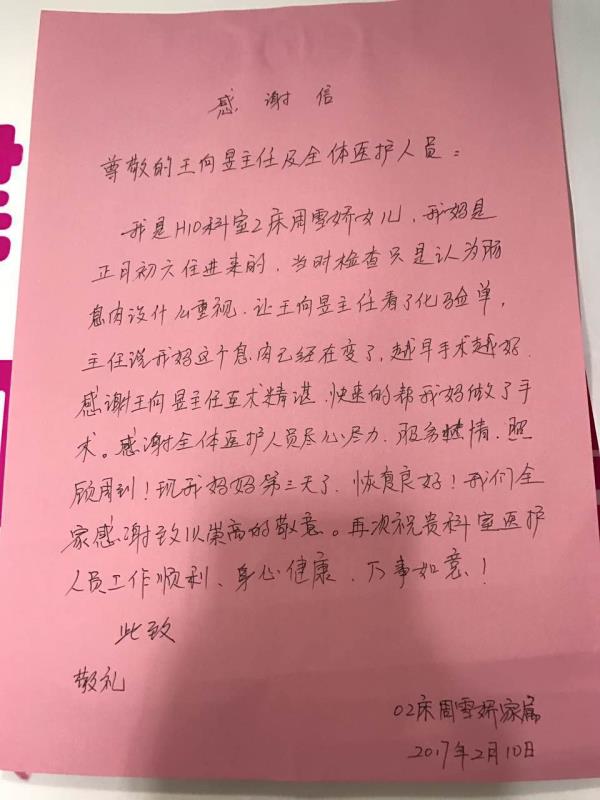感谢H08杨美高医师及全体医护人员