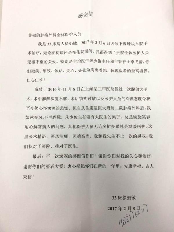 感谢H11肿瘤外科朱少俊医师及全体医护人员