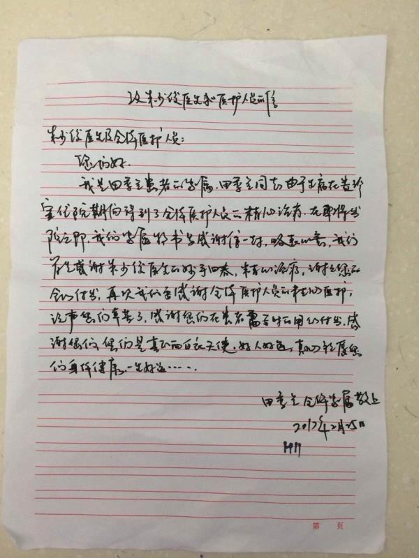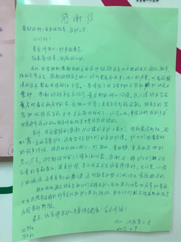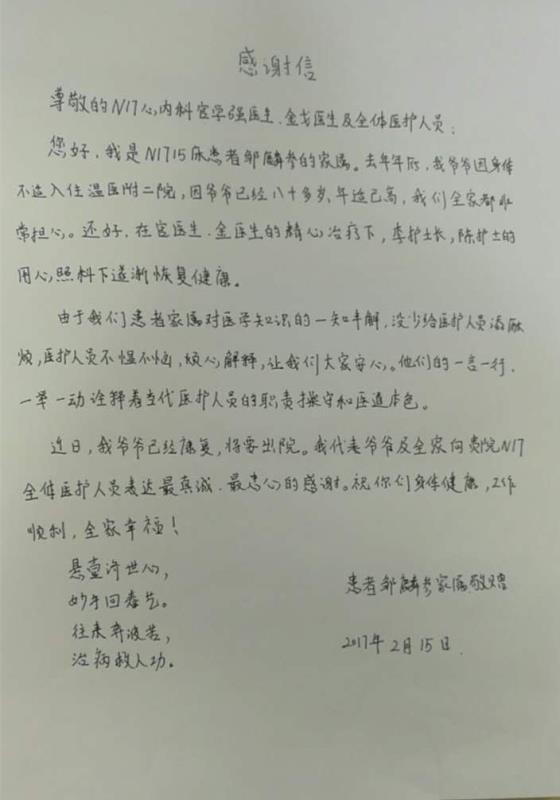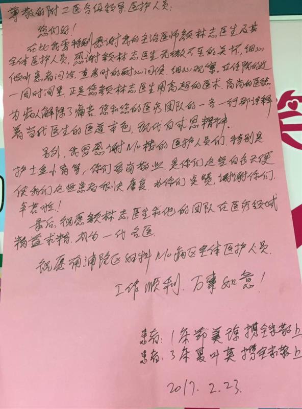 感谢N17李继武医师、李华护士长及全体护士