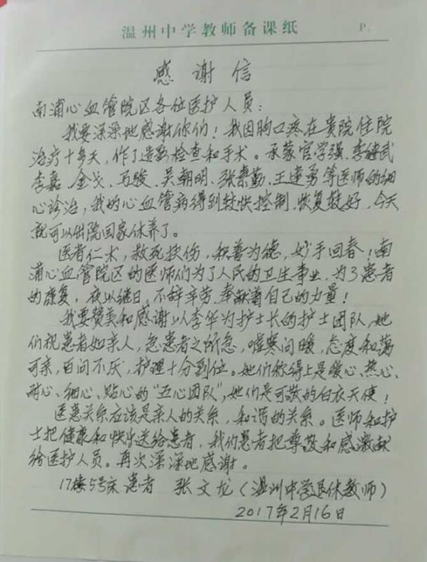 感谢N17心内科官学强、金戈医师及全体医护人员