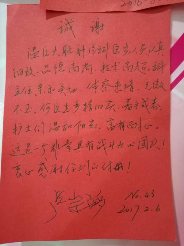 感谢F05神经外科全体医护人员