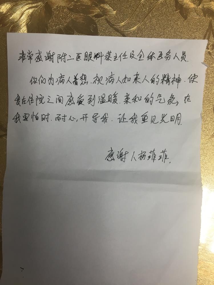 感谢C03眼科蔡剑秋及全体医护人员