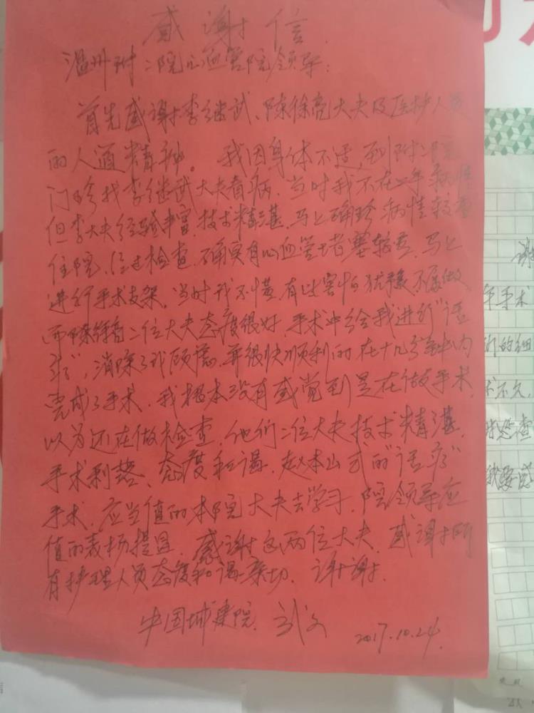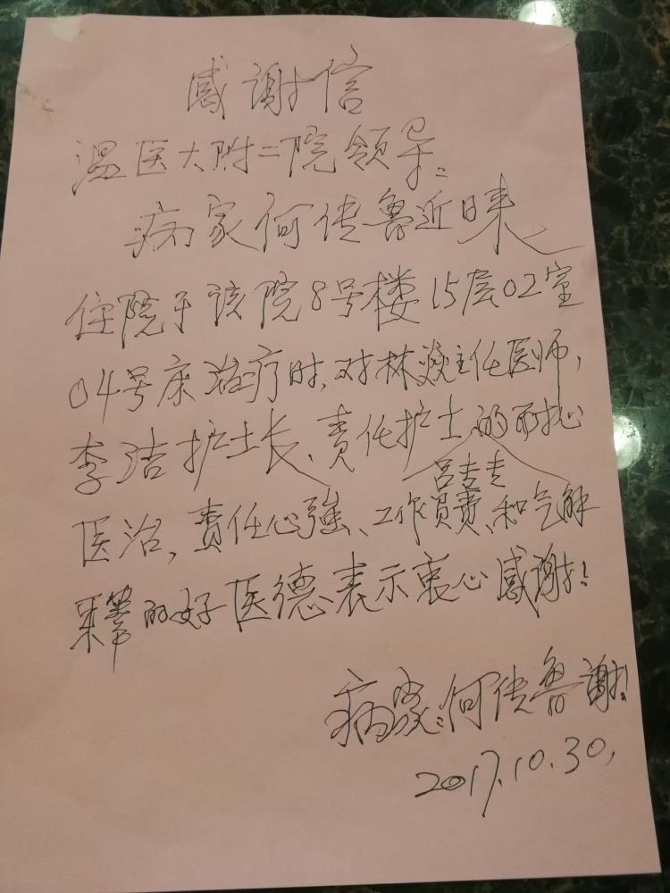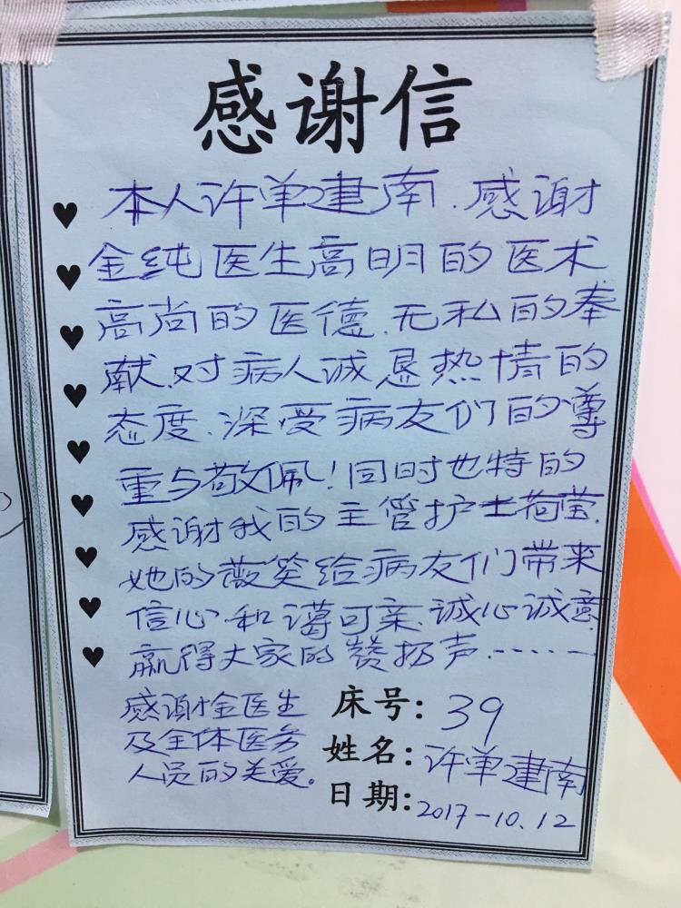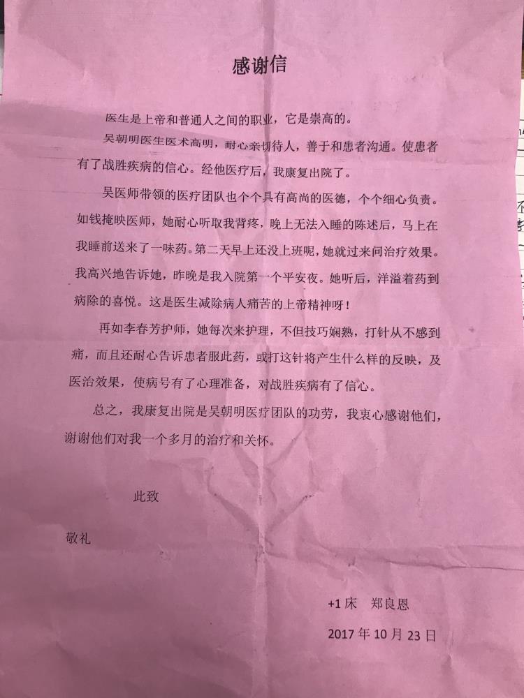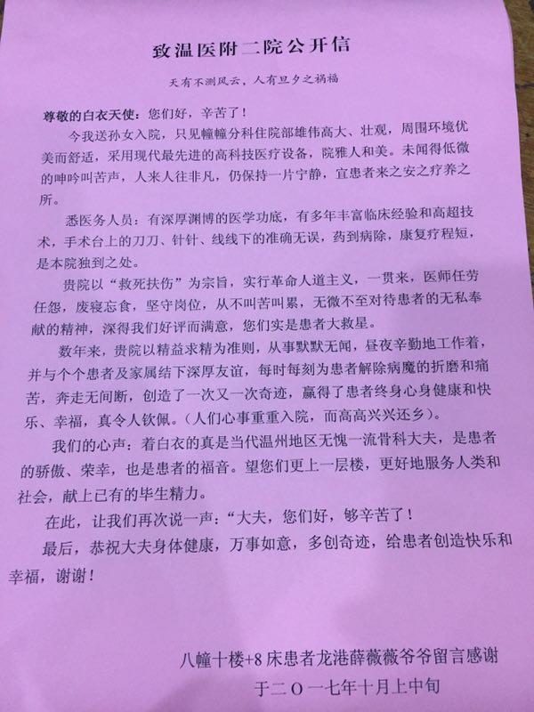 感谢D08骨病薛恩兴及全体医护人员