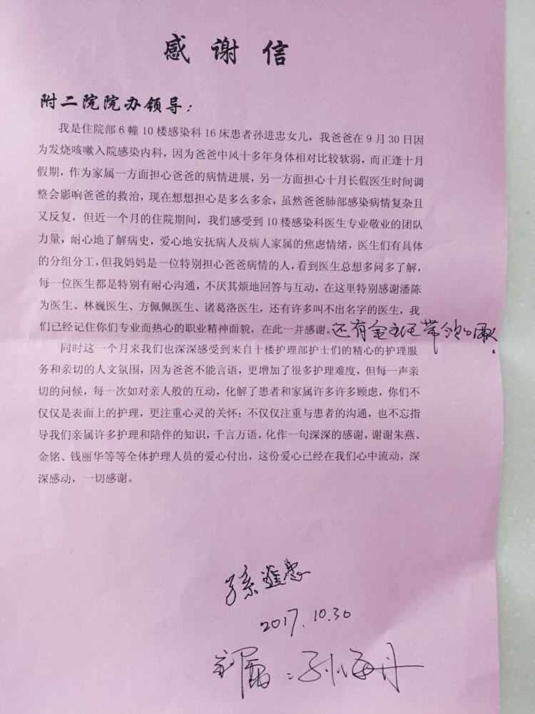 感谢C10感染潘陈为、林巍、方佩佩、诸葛洛及全体医护人员