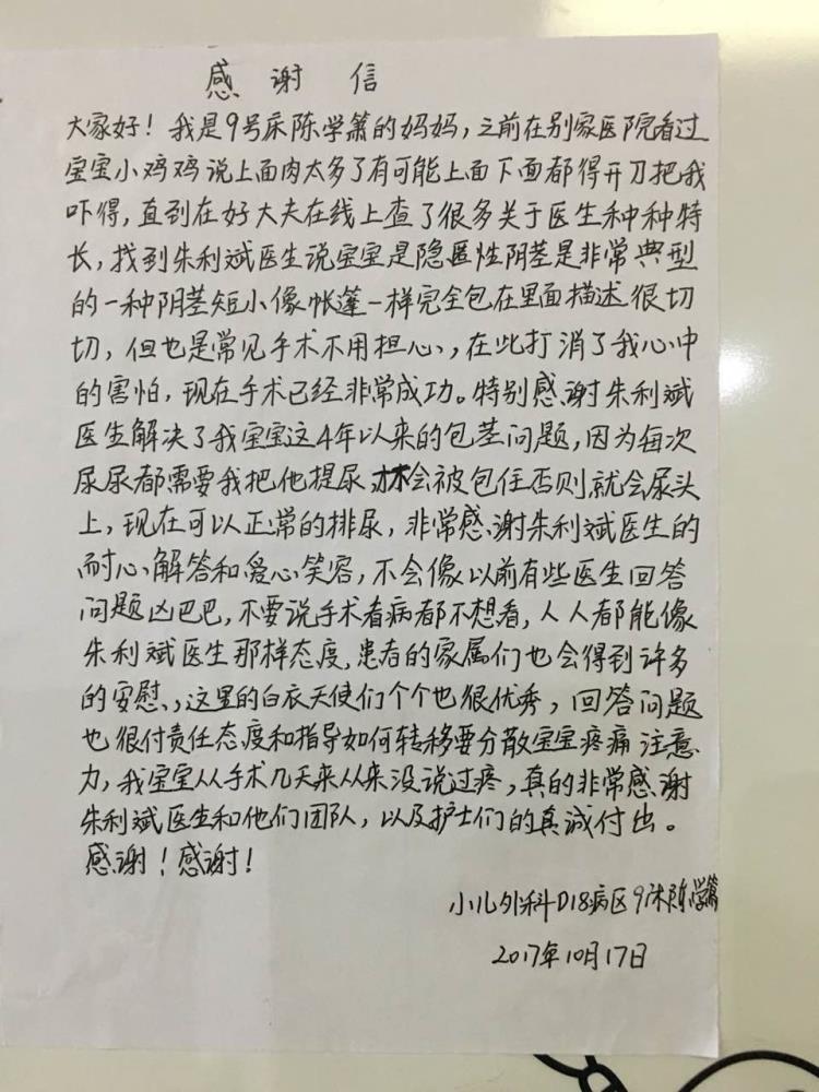 感谢D18小儿外科朱利斌及全体医护人员