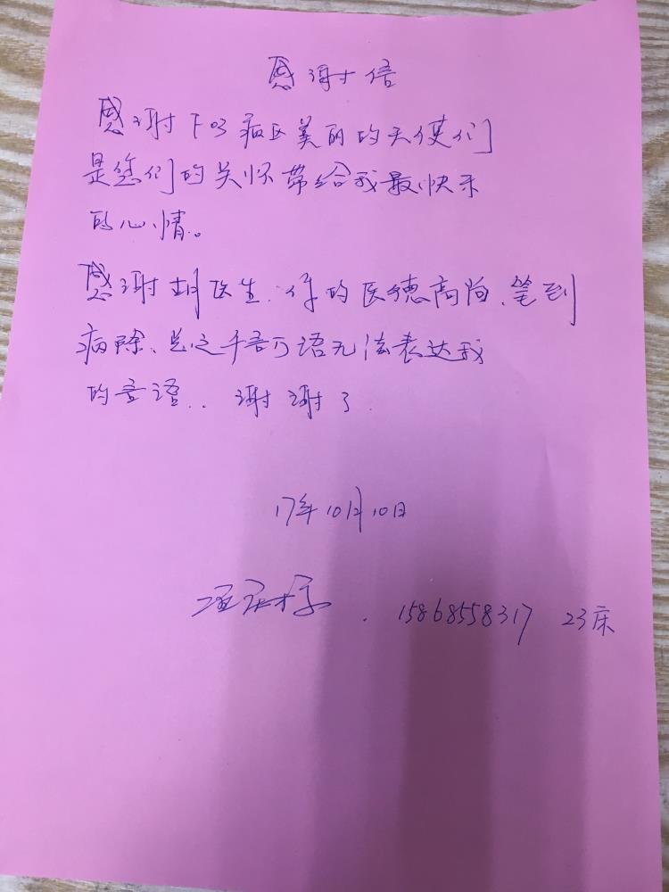 感谢F03胡医师及全体护士