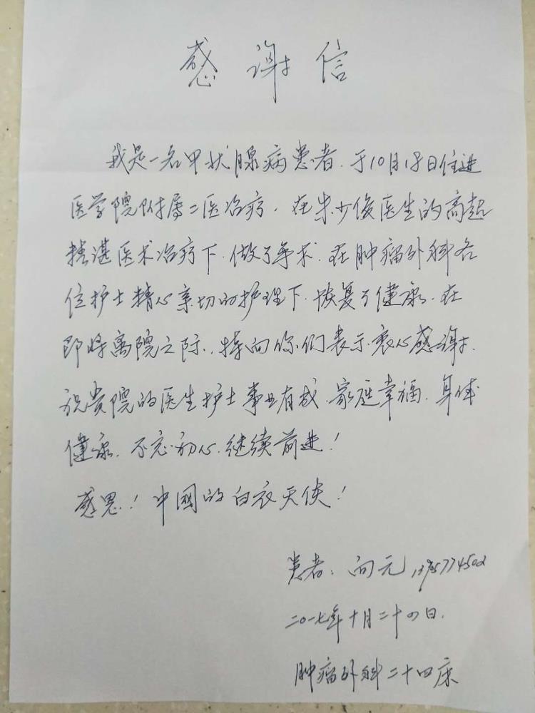 感谢H11肿瘤外科朱少俊及全体医护人员