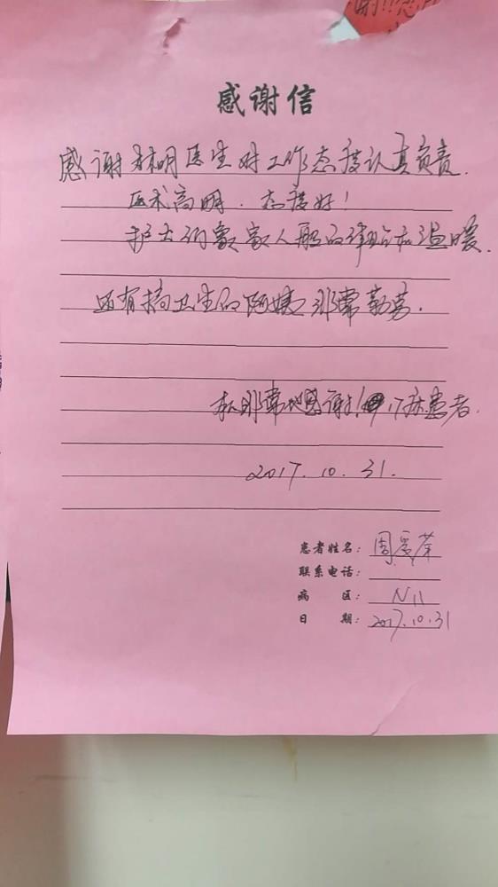感谢N11妇科林明及全体护士