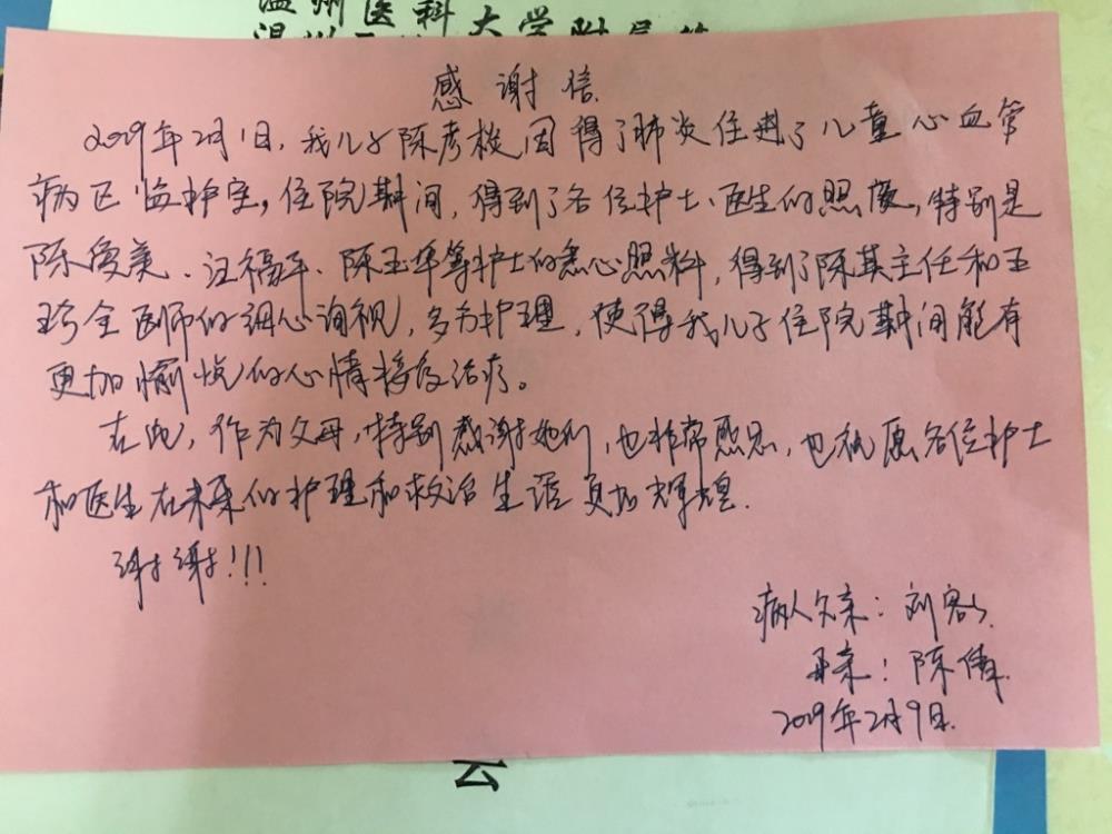 A08儿童心内科 陈其、王珍全、陈爱美、汪福平、陈玉华及全体医护人员