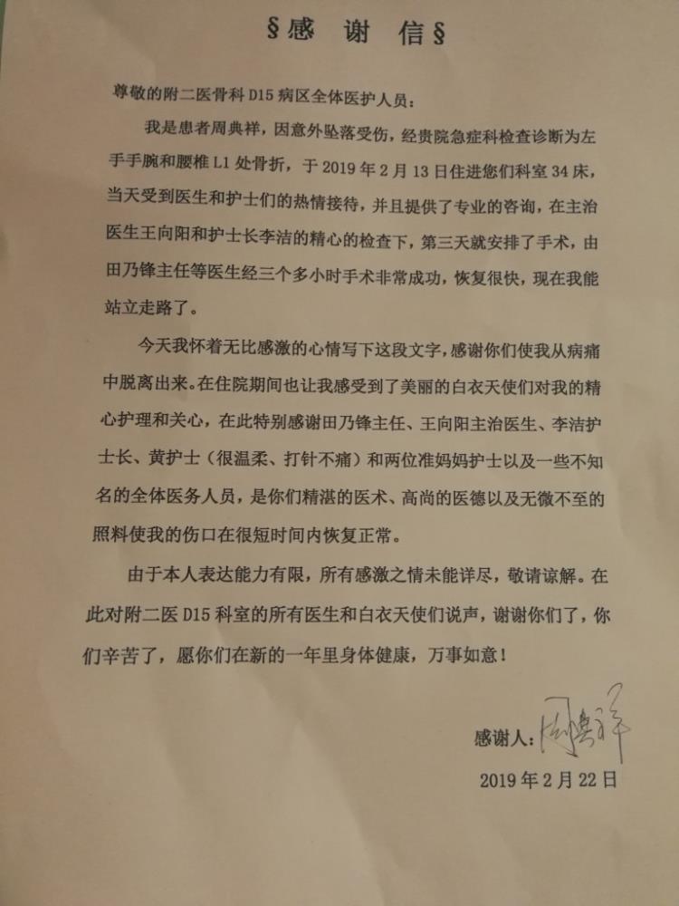 D15脊柱外科 田乃峰主任、王向阳主任、李洁护士长及全体医护人员