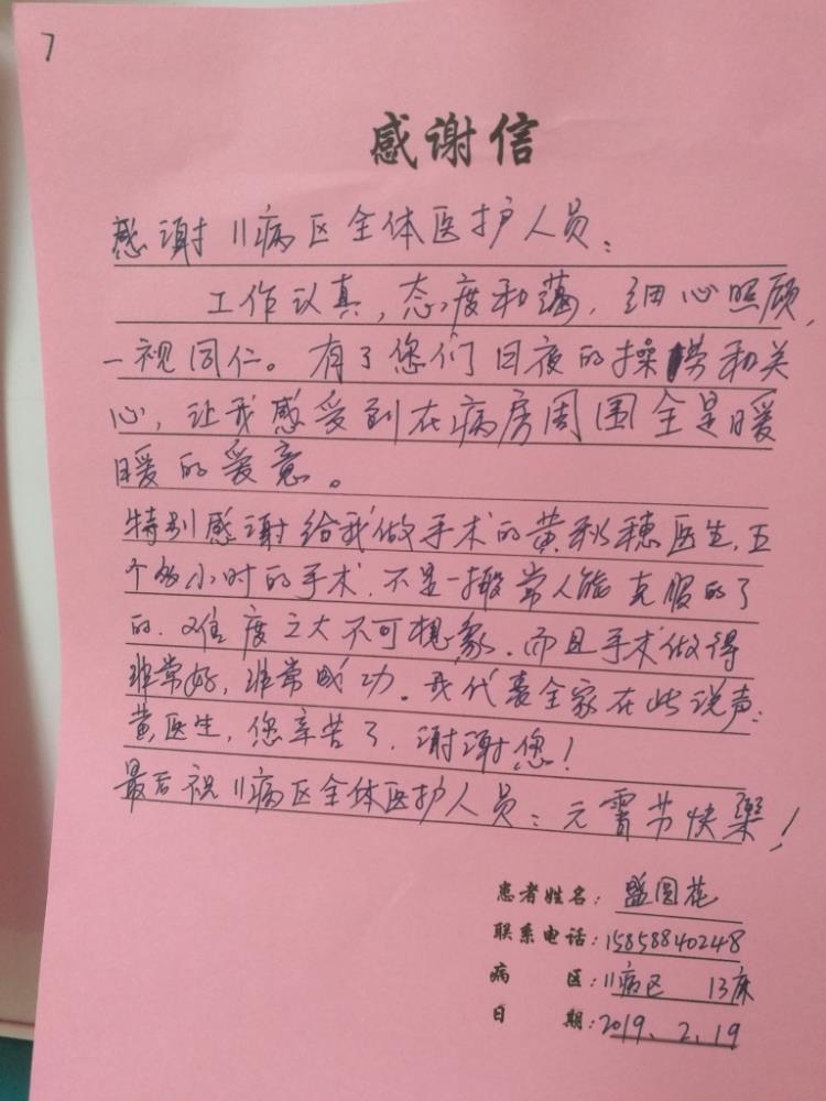 手术室 陈小玲医生、陶洁茹护士长及全体医护人员