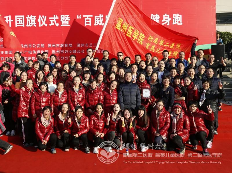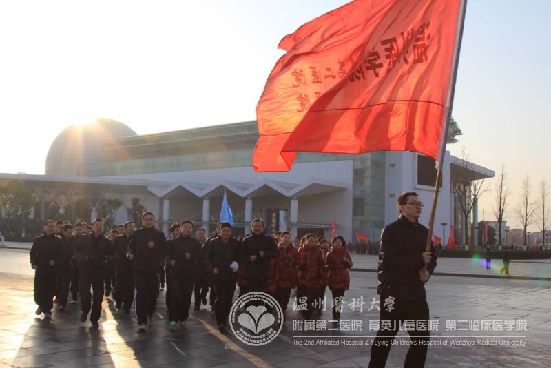 上午7时30分,雄壮的国歌声中,五星红旗缓缓升起。升旗仪式结束后,随着一声发令枪响,万人跑活动正式开始。全市各部门、企事业单位、大中院校、金融机构、驻温部队、社会团体等一万四千多名市民代表,一百六十五个方阵有序地跑出广场。我院职工精神饱满,迎着新年第一缕曙光,满怀着新的期盼,迈着矫健的步伐,喊着响亮的口号“附二附二马到成功”,奋力跑向市人民大会堂,一路上,向全市人民展示了我院职工朝气蓬勃,健康向上的精神风貌。