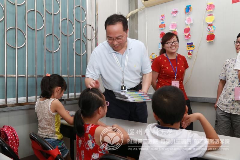 夏令营自7月1日开营以来已有三周余,小朋友们在老师的精心辅导下互相学习文化、音乐、书法知识;一起玩耍游戏、讲故事、下棋等轻松愉快的文体活动。医院党政领导高度重视夏令营工作的开展,7月22日,医院领导连庆泉院长、许慧清副书记一行对夏令营职工子女进行亲切慰问,了解小朋友们的生活环境、学习状况,并为每位到场的职工子女送上纪念品。