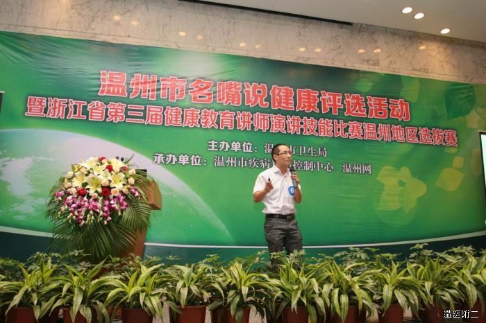 为了提高健康素养宣讲质量和服务能力,推动基层健康教育机构构建健康素养传播平台,遴选我市健康科普教育师资,10月26日上午,由温州市卫生局主办的“2012年温州市名嘴说健康”评选活动在温州市人民大会堂隆重举行,温州市卫生局程锦国局长出席了本次活动并致辞。
