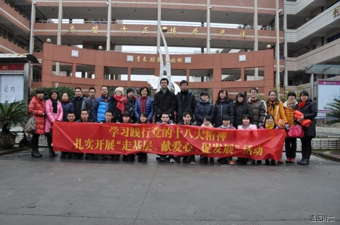 1月5日上午,为更好地学习践行党的十八大精神,我院儿童ICU党支部、民盟附属儿童医院支部、儿童ICU青年文明号等5个党团,组织32位医生、护士和志愿者赴瓯海区郭溪镇塘下中学,为学生免费开展体检,“走基层、献爱心、促发展”帮扶活动。