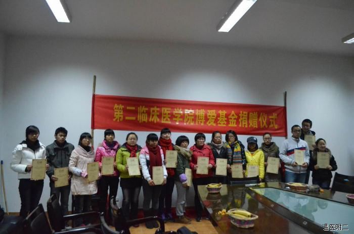 我们第二临床医学院的“博爱”基金于2006年开始设立。它是温医首个由二级学院在校或已毕业的学长们,特别是接受过各种资助的学生自发组织创办的一项助学金。在国家、社会和学校给予贫困生以多项资助的前提下,该基金主要用于帮助家庭经济困难需要特别资助、发生意外状况、家庭遭受自然灾害和亲人身患重病等情况的“身边同学”。迄今,已有近9万元的博爱基金用于帮助经济困难学生完成学业。