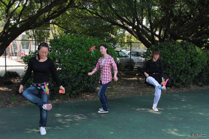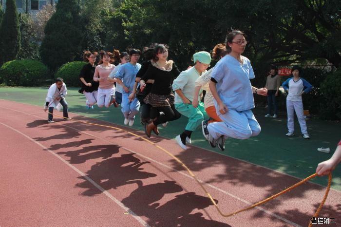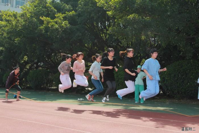 趣味活动的现场热闹非凡。定点投篮、踢毽子、跳绳、飞镖,仰卧起坐等个人项目活动充满竞技性、趣味性、娱乐性,大家尽情玩耍、尽情享受春光,奖取丰厚纪念品。特别是集体跳绳,邀请男同志参加,赛前热身严阵以待,个个精神抖擞、意气风发。随着比赛开始声的响起,长绳上下翻飞,大家配合默契,有节奏、快速地跳跃着,全场一派紧张热闹的景象。由于赛前的精心组织,认真训练,选手们个个身手矫健、步伐轻盈、动作娴熟、节奏协调,犹如十只蝴蝶在上下飞舞的绳索中翩翩起舞。场下观众也没闲着,聚在一起扯着嗓子数着次数,欢呼叫好,笑容洋溢在每个人的脸上。整个过程充分体现了集体跳绳“默契团结、齐心取胜”的特点。经过激烈的比拼,影像超声ICU队以娴熟的跳绳技巧和团队协作的集体主义精神赢得第一名,大五官门诊、儿科1队并列第二名,骨科队、儿科2队、药剂科队、外科2队、急诊脑科分别获得前八的好成绩。