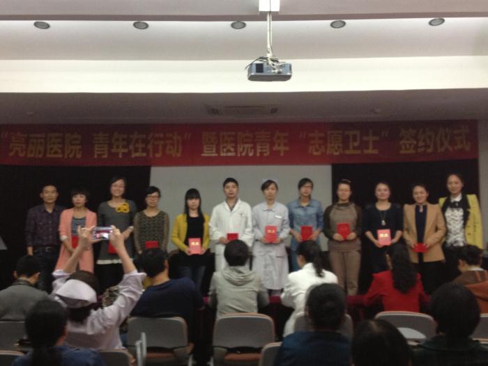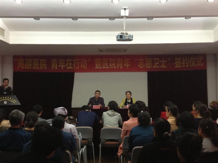 为进一步提高我院综合卫生环境,为职工和患者创造一个整洁、优美的工作和就医环境,3月14日,由我院团委和后勤事务科共同举行的“亮丽医院·青年在行动”暨医院青年“志愿卫士”签约仪式举行。