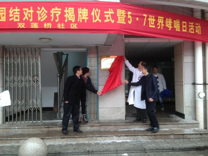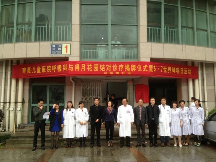 我院儿童呼吸科于五马街道双莲桥社区得月花园创建了全市首个健康促进特色小区义诊基地,当天由执行院长李昌崇教授和鹿城区副区长章月影、鹿城区卫生局局长潘一凡、五马街道办事处主任胡俊武共同为义诊基地揭牌。今后我院呼吸科将每季度安排一至两名医师到社区开展半天的义诊活动,并举行一次健康宣教讲座,同时为结对社区患儿开通就诊绿色通道,提供诊疗咨询服务。