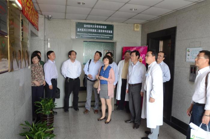 5月12日,省科技厅条件处王桂良处长,携浙江省重点实验室实地考察专家组一行,在温州医学院瞿佳校长、吕建新副校长、校规划发展处谢红莉处长及我院谷定英院长、陈寿权书记、连庆泉副院长等领导的陪同下,对我院“浙江省微创骨科重点实验室”申报进行评估考察。