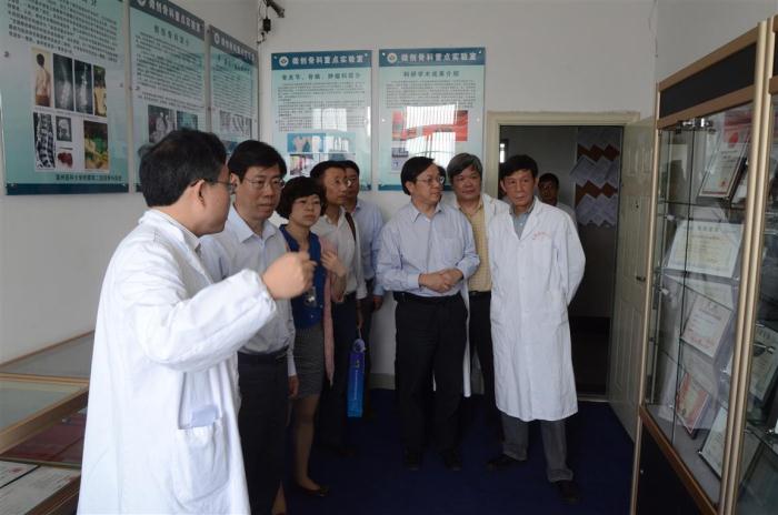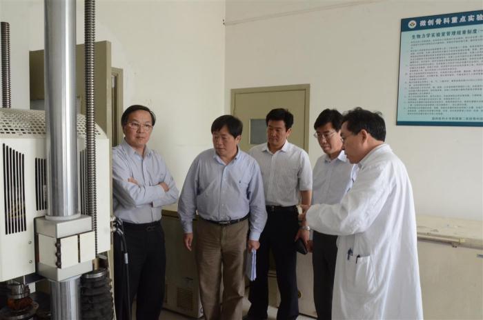 随后,专家组对微创骨科生物力学实验室、数字化医学实验室、运动医学实验室、组织学实验室、材料学实验室、分子生物学实验室、形态学实验室、细胞学实验室等各大实验室进行考察评估,先后听取了相关实验室负责人的汇报。省科技厅王桂良处长对我院微创骨科重点实验室的建设给予了充分肯定。王处长说,一定要依托实验室的平台条件,发挥学科优势推动临床学科发展,为创新强省建设作出贡献。