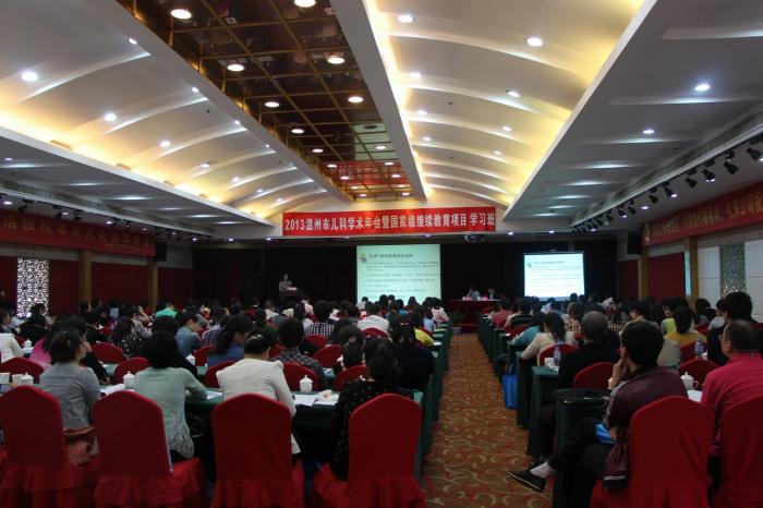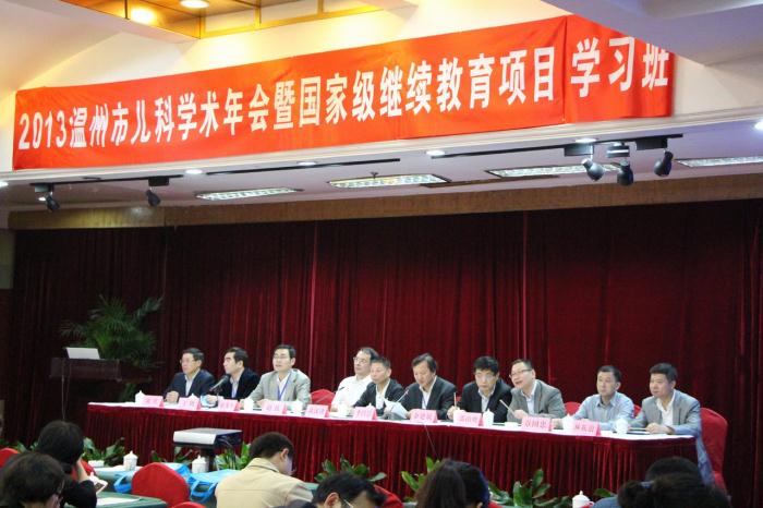 由市医学会儿科学分会和我院共同主办的“2013年市儿科学术年会暨国家级继续教育项目《儿科疾病诊疗新进展》学习班”于5月11日至12日在温州红太阳宾馆召开。市医学会副会长黄汉津教授莅临开幕式。